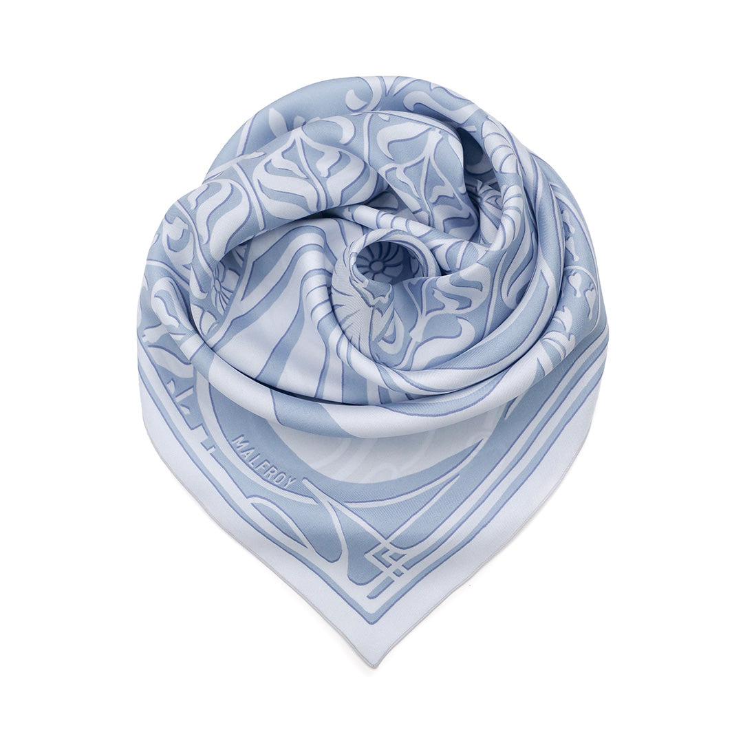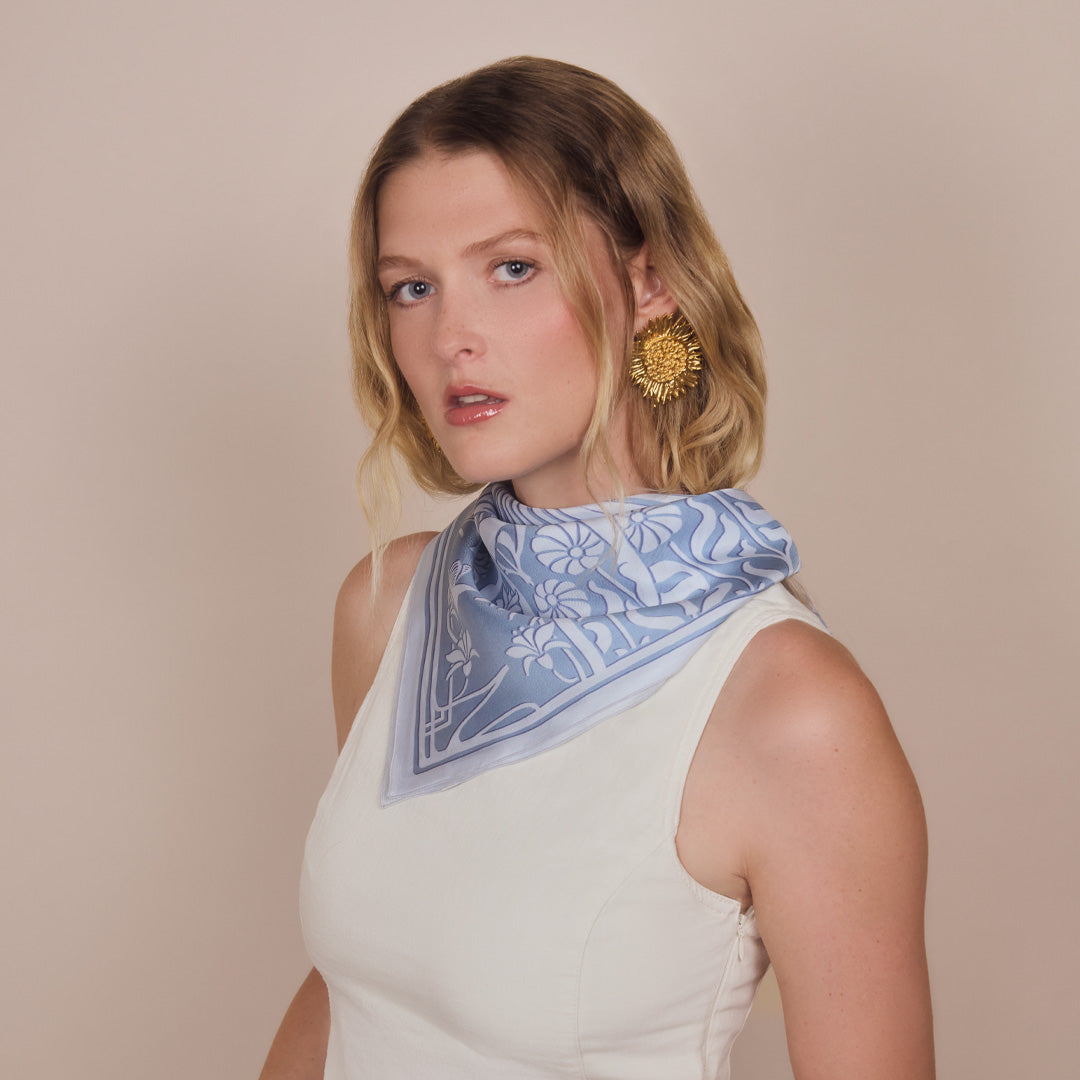 The silk bandana: A small square for a beautiful effect. The Malfroy bandana is an accessory that allows you to unleash your creativity. Its size allows for multiple ways to wear it: tied around your neck, attached to your bag, or as a headscarf, it adapts to all your desires.
