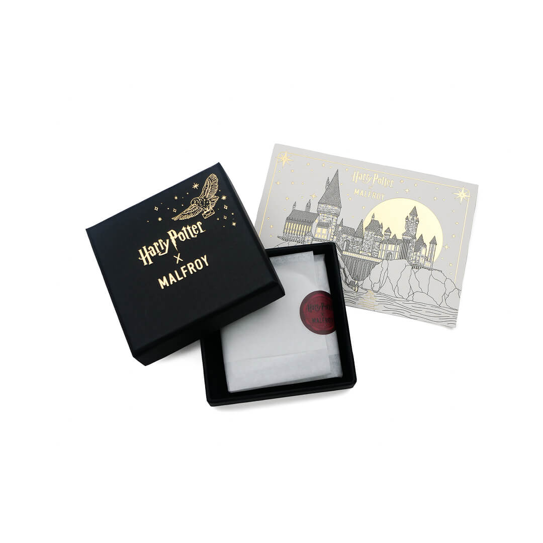 Le modèle Serpentard met en avant le serpent de la maison, une fiole de potion, une lune de l’armoire à disparaître ainsi que la pomme croquée utilisée pour l’éprouver.
