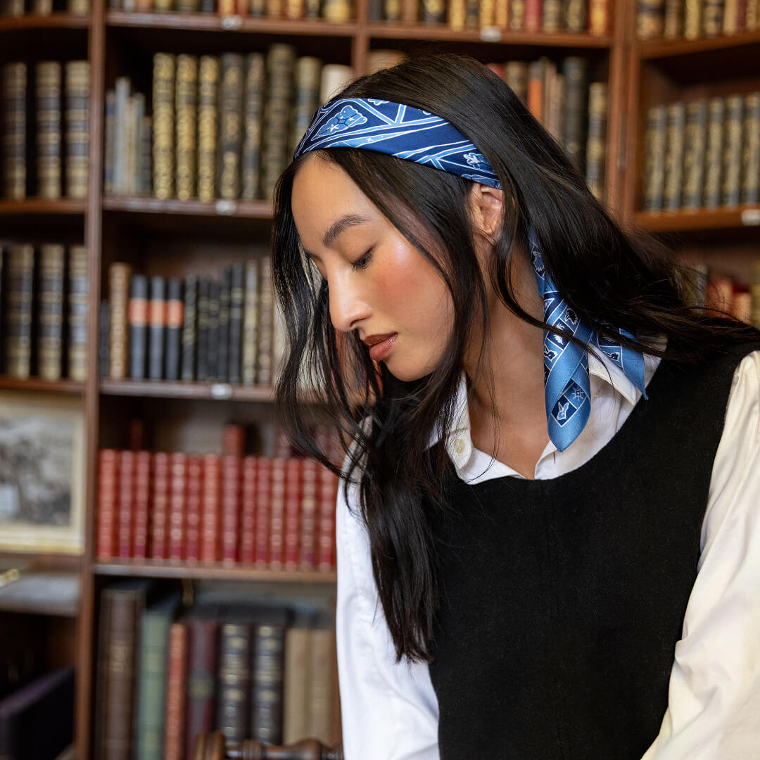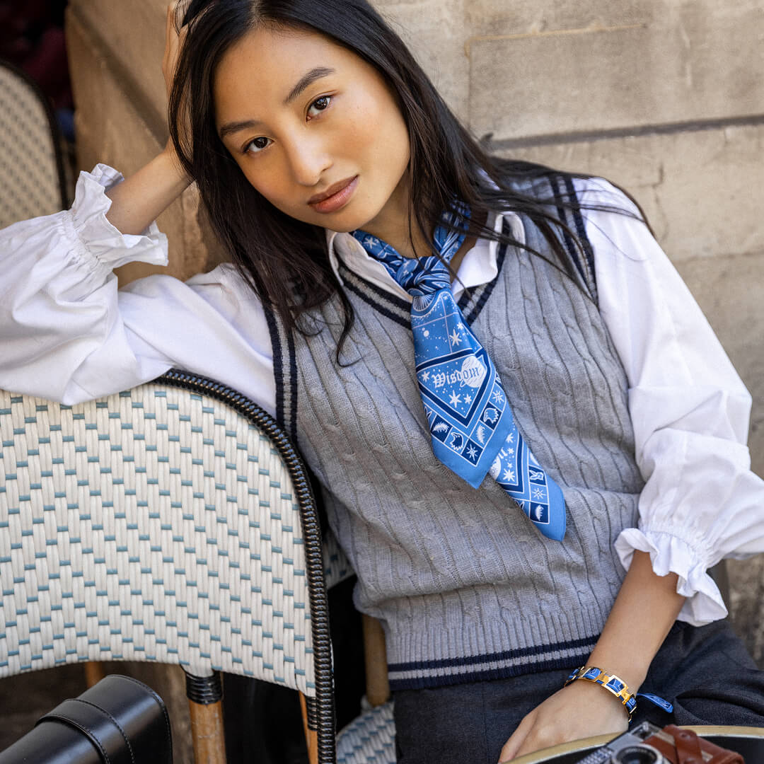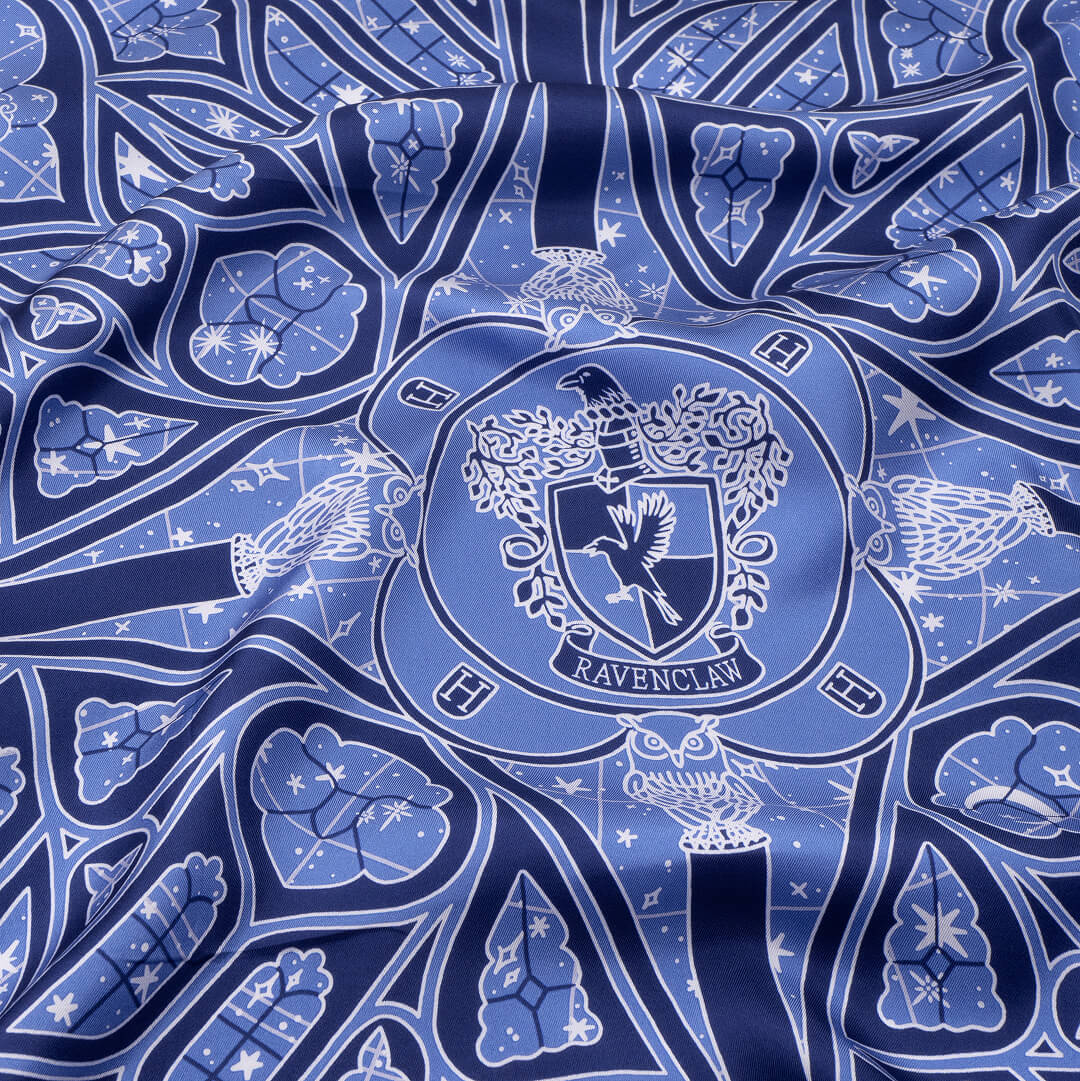 Les qualité qui définissent un élève Serdaigle y sont écrites en lettres d'argent faisant de ce foulard un étendard élégant et discret aux couleurs de leur maison.