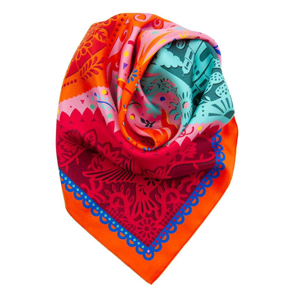 Même au cœur de l’hiver ces foulards vous envelopperont de chaleur et de leur esprit joyeux et coloré. Un produit en soie apprécié par les femmes