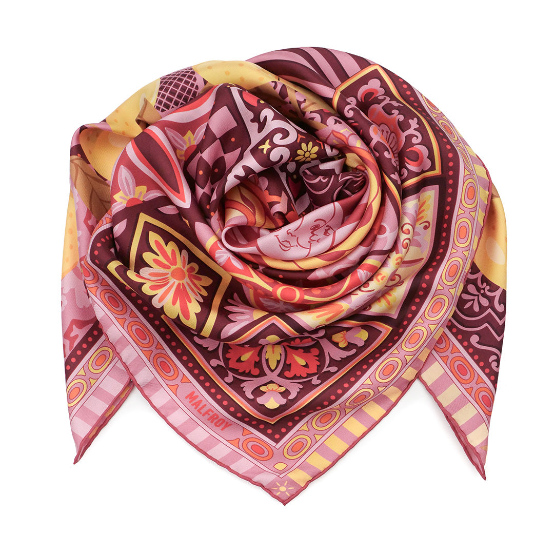 Le carré Malfroy est le foulard de soie par excellence. Fait à partir d’un twill de soie de qualité supérieure et imprimé avec le plus grand soin, c’est un accessoire d’exception.