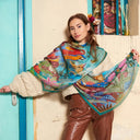 Echarpe en soie 67x180, Montgolfière, de l’artiste Alain Thomas – Bleu